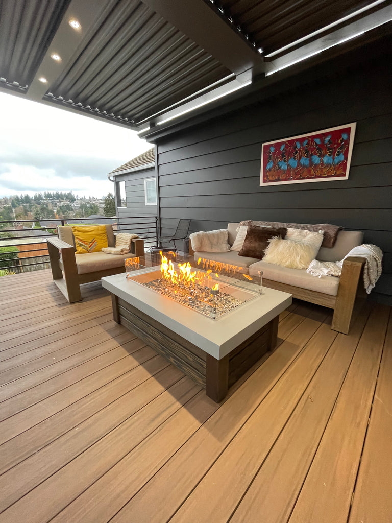 Top is handcrafted out of Glass Fiber Reinforced Concrete in the color of your choice and sealed to withstand the elements. Sitting on a beautifully finished wood base in Brazilian Teak, Cedar, or Pine. This feature comes standard with a top of the line crossfire burner, 3/4" flex line kit, and key valve set. Lava rocks are available please check out our accessories. Each feature comes with manual lighter ignition. Electronic smart phone ignition is available in our accessories. Fire feature will be delivered as a complete system ready to be hooked up to your gas stub or propane tank. Licensed gas installer recommended for installation. We offer expert delivery and installation to the Pacific Northwest. Select expert delivery and install at checkout.