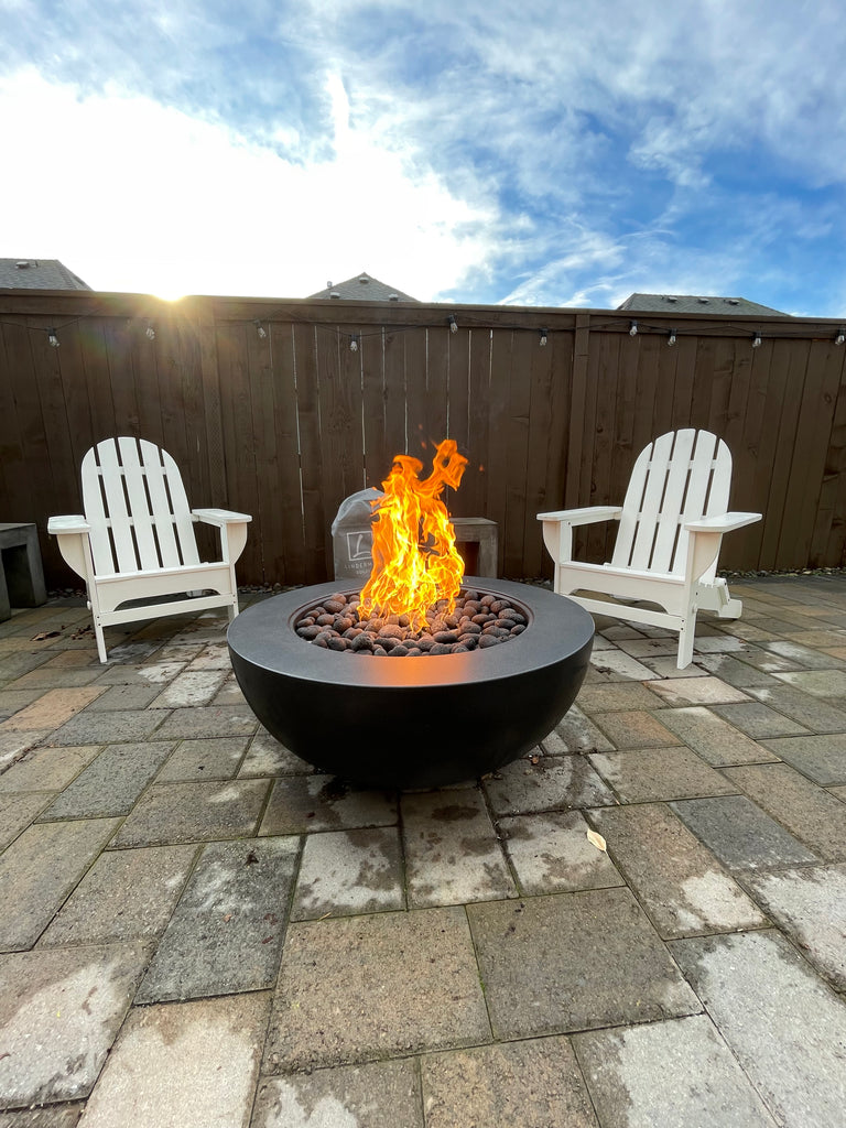 Handcrafted out of Glass Fiber Reinforced Concrete in the color of your choice and sealed to withstand the elements. This fire bowl comes standard with a top of the line high BTU Octagonal crossfire burner, 3/4" flex line kit, and key valve set. Each feature comes with manual lighter ignition. Electronic smart phone ignition is available in our accessories. Fire feature will be delivered as a complete system ready to be hooked up to your gas stub or propane tank. Licensed gas installer recommended for installation. We offer expert delivery and installation to the Pacific Northwest. Select expert delivery and install at checkout.